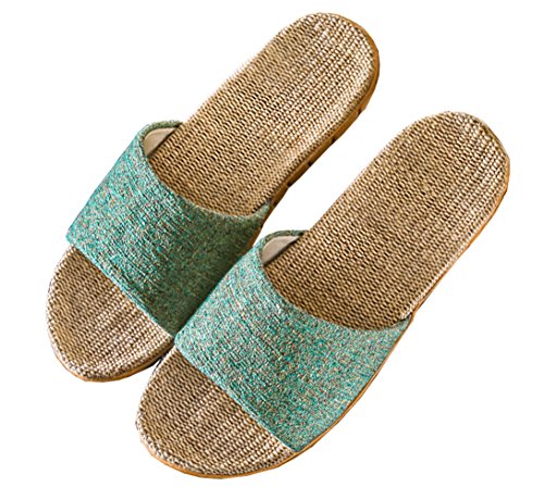 [SHPEROWW] レディース メンズ ルームシューズ 夏春 スリッパ 室内履き 静音で軽量 麻 可愛い 滑り止め 来客用 部屋用 ギフト グリーン 22.5-23.0cm