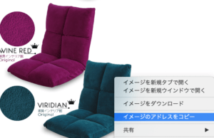 画面の上でマウスを右クリックすると、このようにずらっと項目が出てくるのでその中から「イメージのアドレスをコピー」をクリックし、