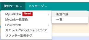緑色の帯の部分から、以下の様に「便利ツール」をクリックし、「New!」のマークが付いた「MyLinkBox」を表示させます。