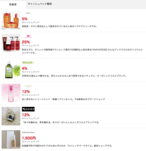 monokaでは割合のパーセンテージが高く、大きいものでは25%という物もあり、とってもお得なキャッシュバックサービスなんです。