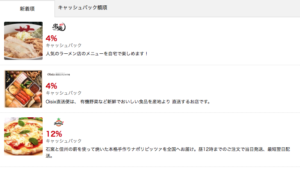 1割以上ですから、飲食でのキャッシュバックも軽視できません。