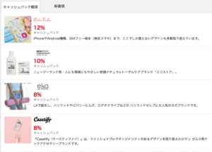 キャッシュバック率は%(パーセンテージ)や金額でひと目でわかるように表示されています。